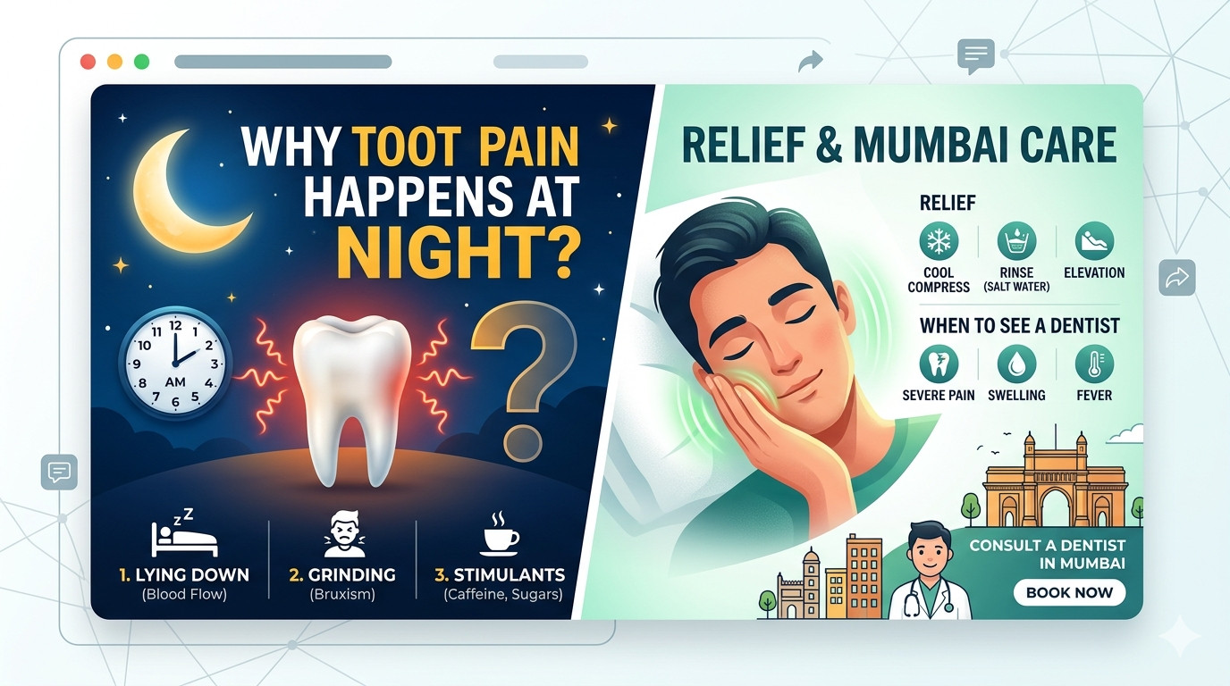 Tooth pain that suddenly worsens at night is a common issue faced by many patients in Mumbai and Powai. During the day, the discom...